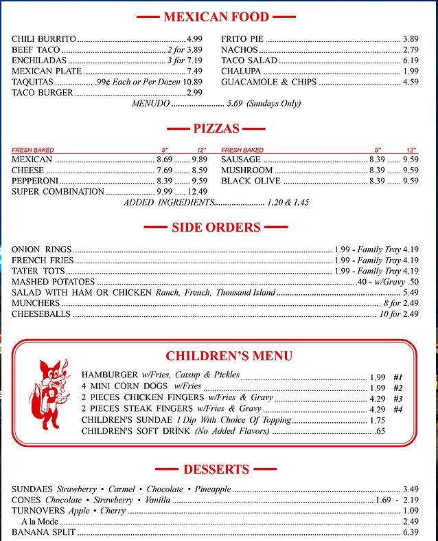 Foxy's Drive In Menu