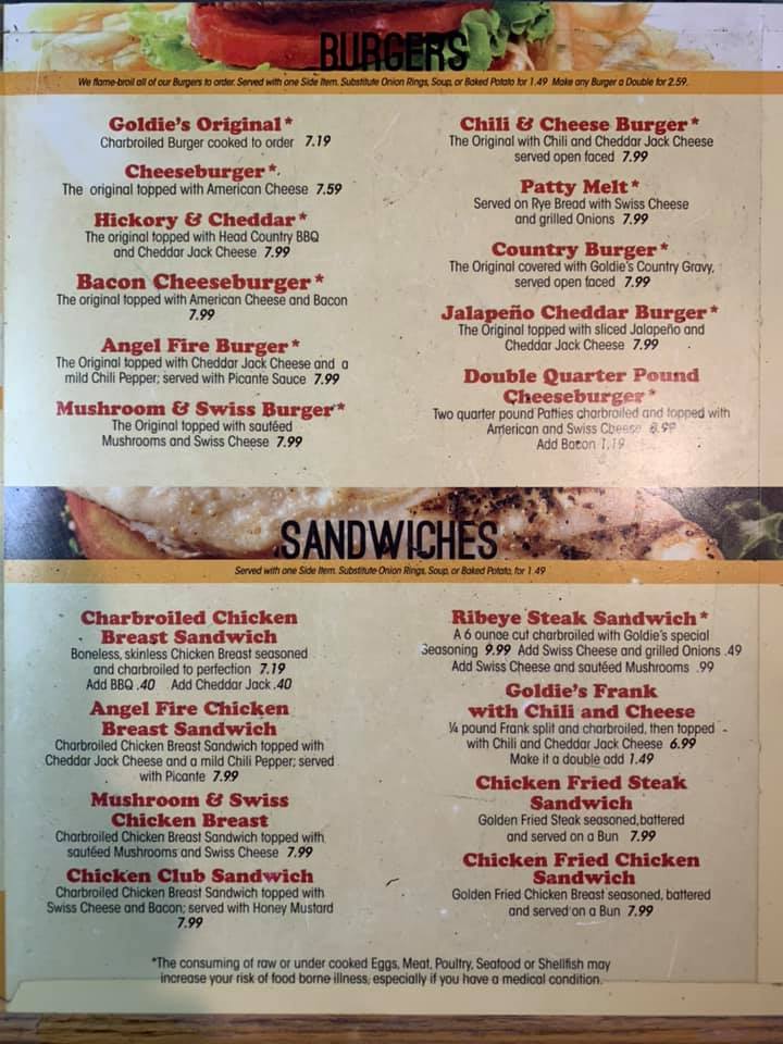 Goldie's Patio Grill Menu