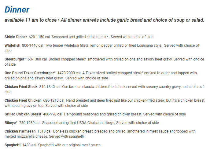 Dinner Iron Skillet Restaurant Menu