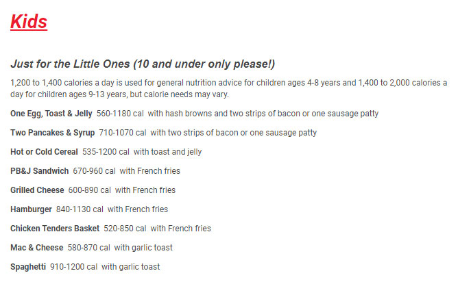 Kids Iron Skillet Restaurant Menu