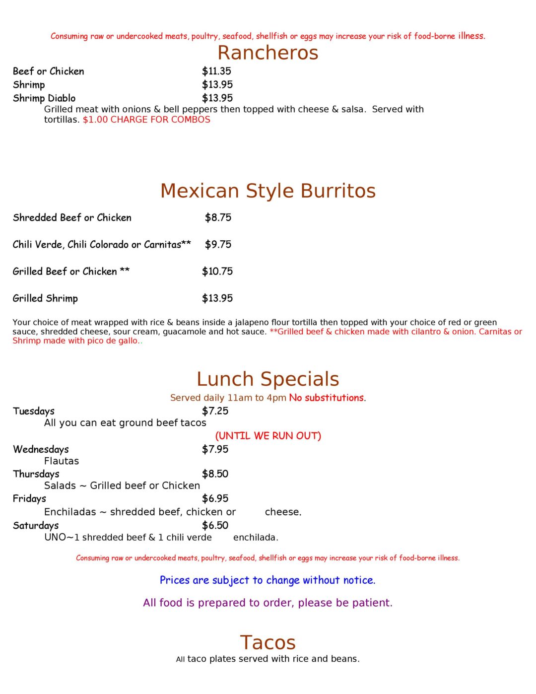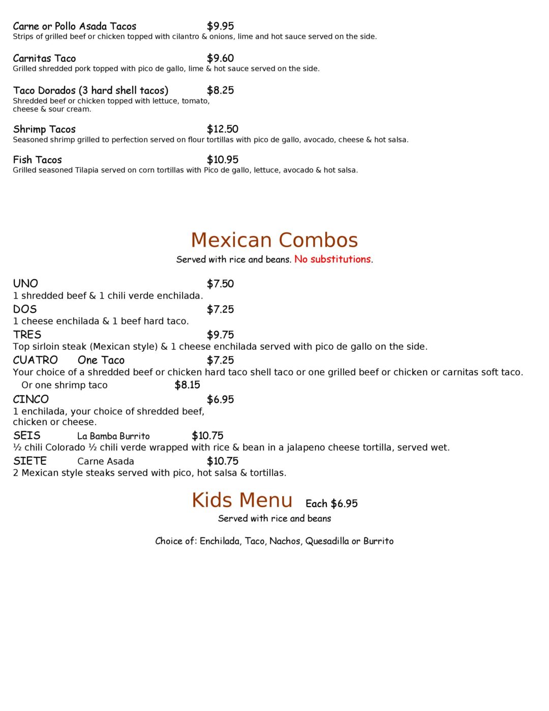 La Casita De Martin Menu