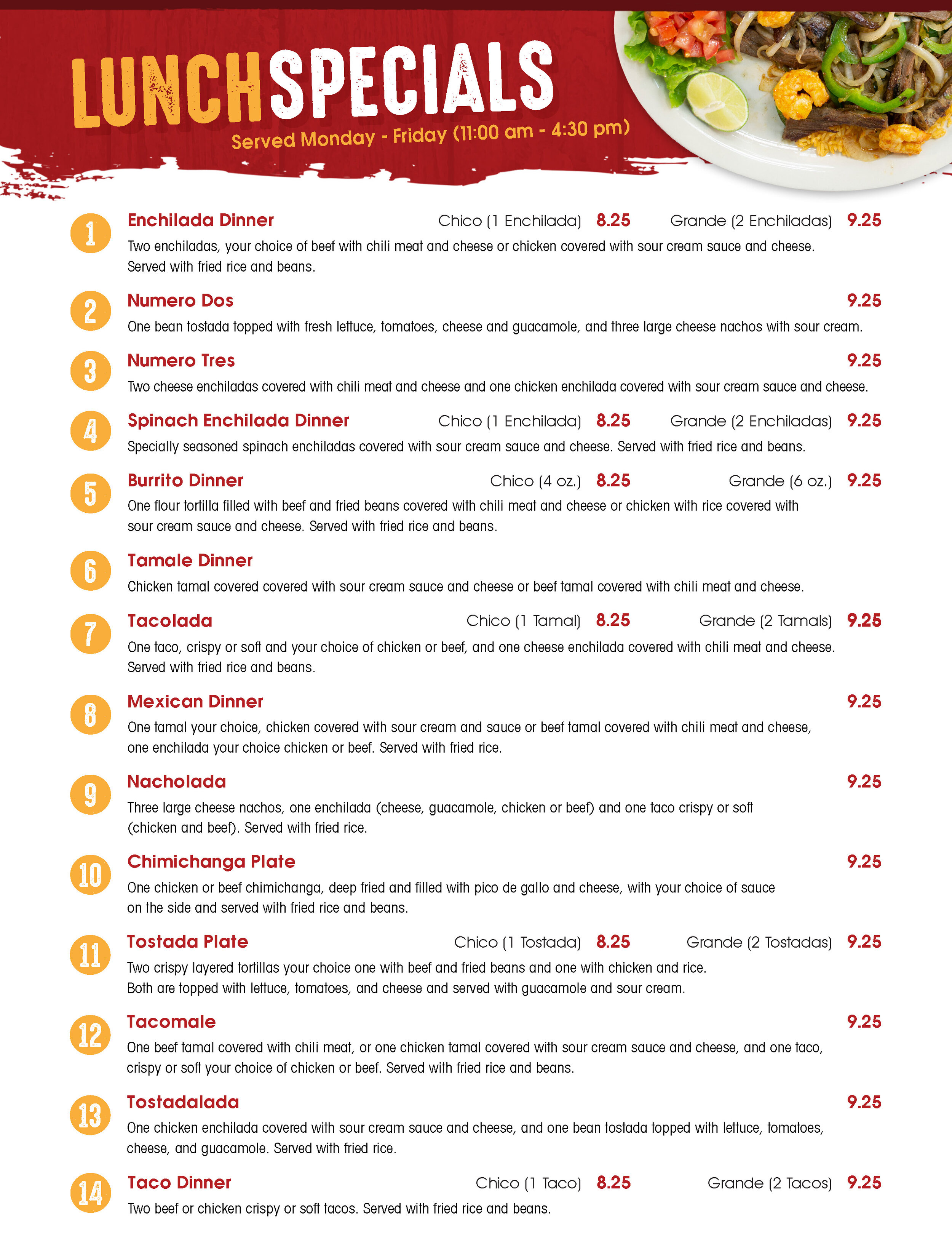 Pecina's Mexican Cafe Menu