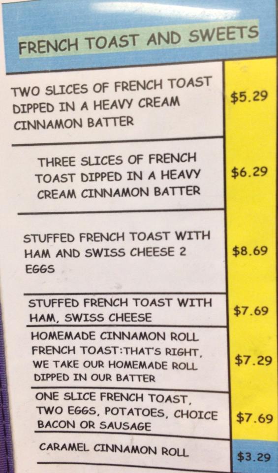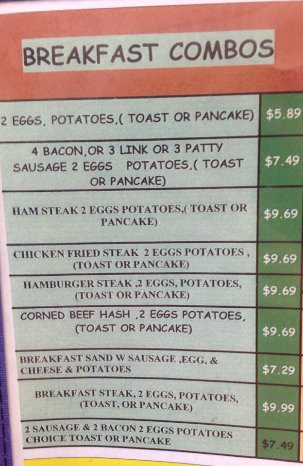 Breakfast Sherries Place Menu