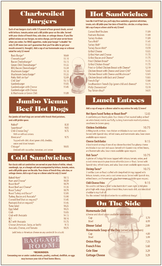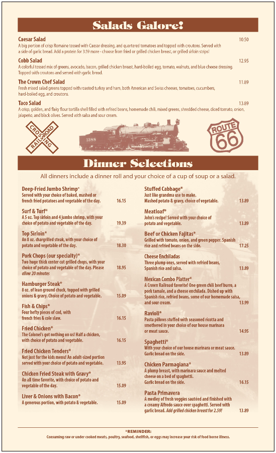 The Crown Railroad Café Menu