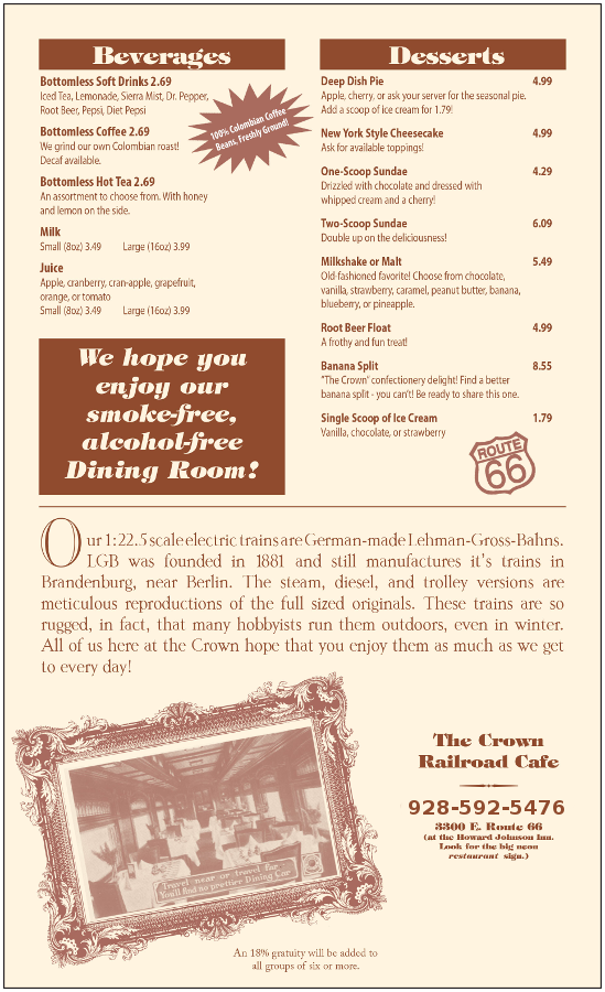 General The Crown Railroad Café General Menu