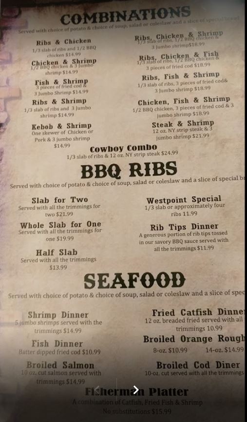 Westpoint Bbq Menu
